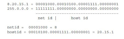 An IP address on a Class A network that has not been subnetted would have an address/mask pair similar to: 8.20.15.1 255.0.0.0. To see how the mask helps you identify the network and node parts of the address, convert the address and mask to binary numbers.